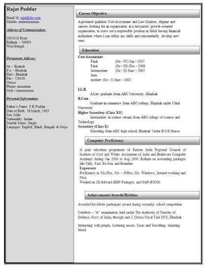 CV Format » Resume Format Samples